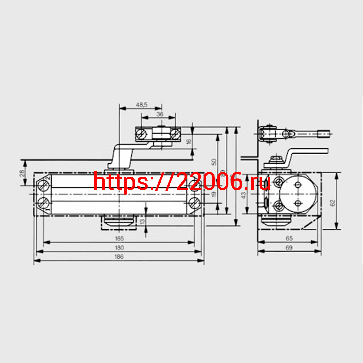 - Доводчик Dorma (Дорма) дверной TS 77 EN 2, с рычажной тягой, серый в Москве недорого