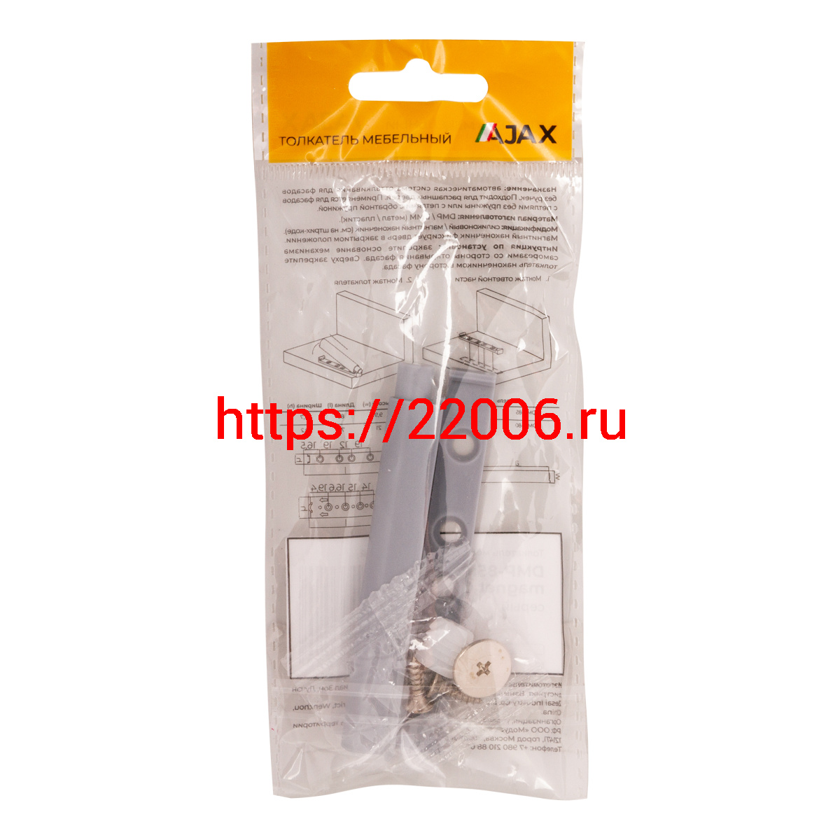 - Толкатель Ajax (Аякс) мебельный пластиковый DMP-85/14M с магнитом Grey серый в Москве недорого