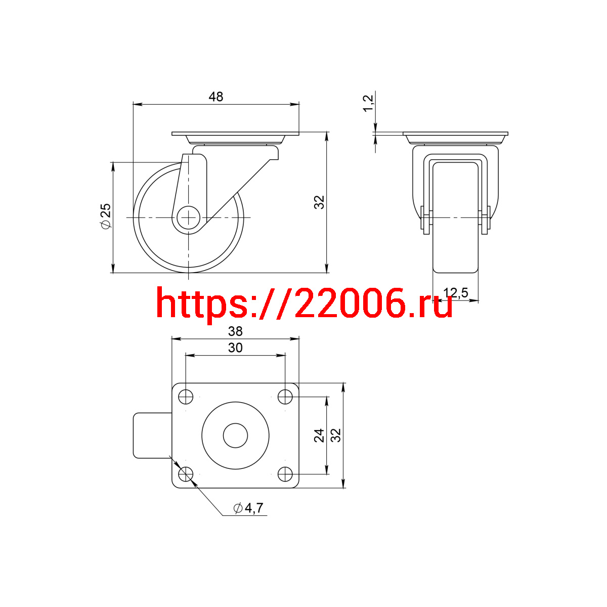 - Опора колесная Ajax (Аякс) с площадкой WL/B-25R/15kg резина в Москве недорого