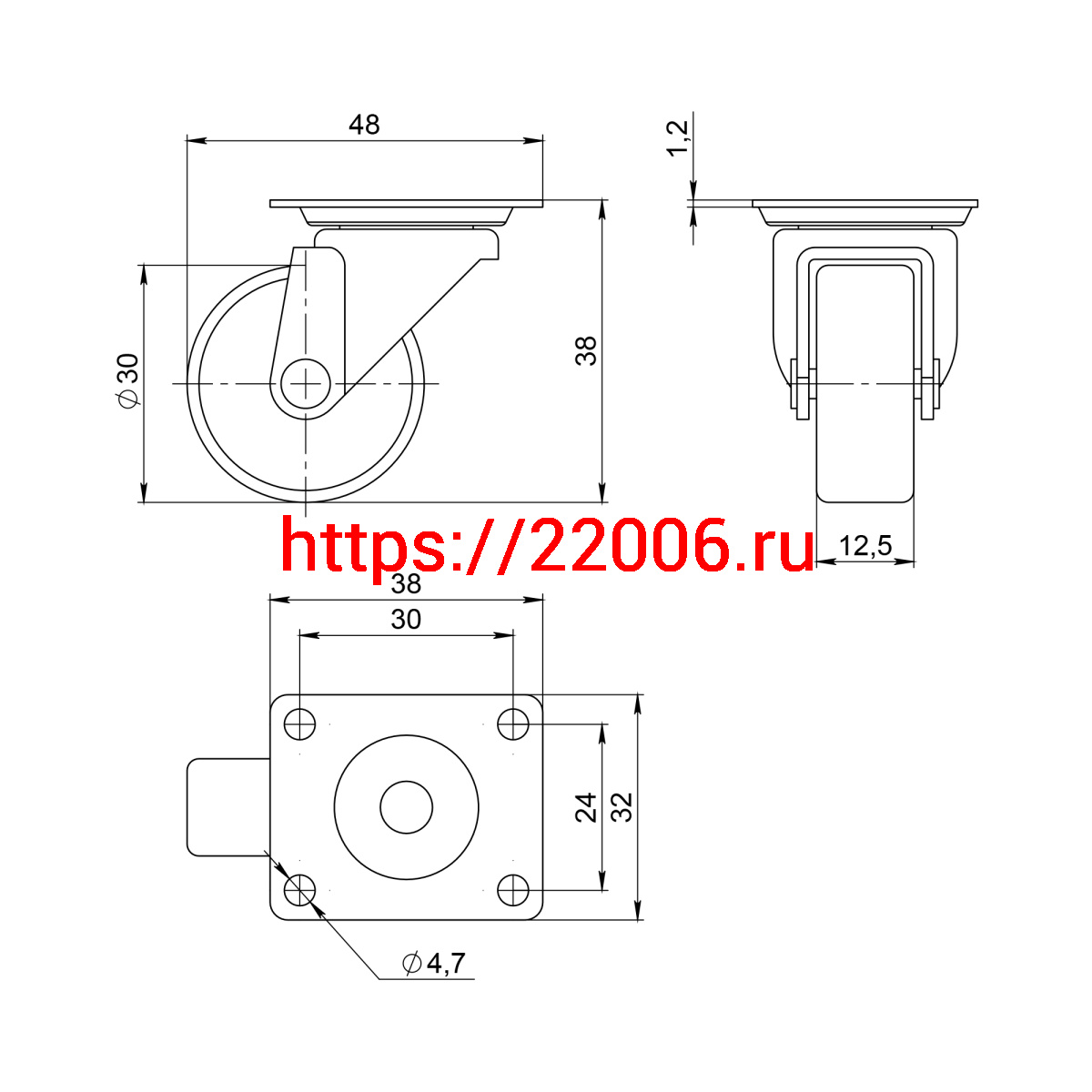 - Опора колесная Ajax (Аякс) с площадкой WL/B-30P/15kg пластик в Москве недорого
