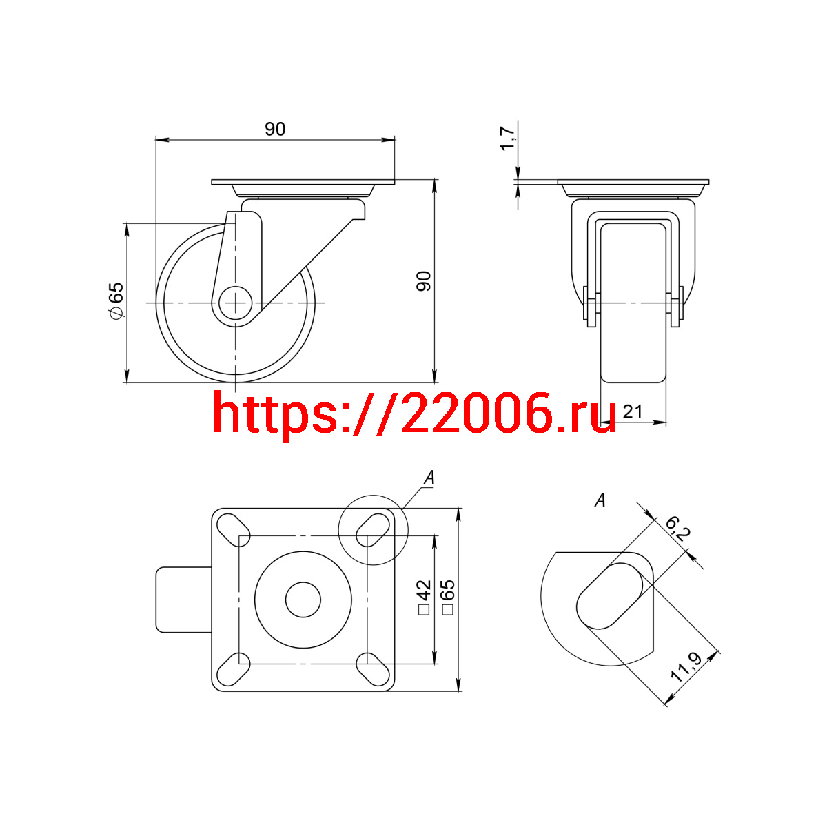 - Опора колесная Ajax (Аякс) с площадкой WL/B-60R/50kg резина в Москве недорого