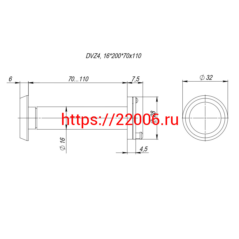 - Глазок Fuaro (Фуаро) дверной, оптика пластик DV-LUX 4/110-70/Z (VIEWER 4 DVZ_LUX) CP хром в Москве недорого
