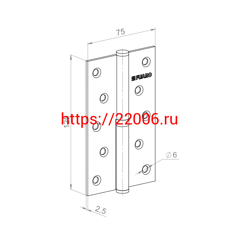 - Петля Fuaro (Фуаро) съемная IN5430SR CP правая (413-5 125x75x2,5) хром в Москве недорого