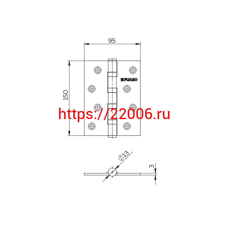 - Универсальная петля Fuaro 4BB/E 150x95x3 PB «латунь» в Москве недорого
