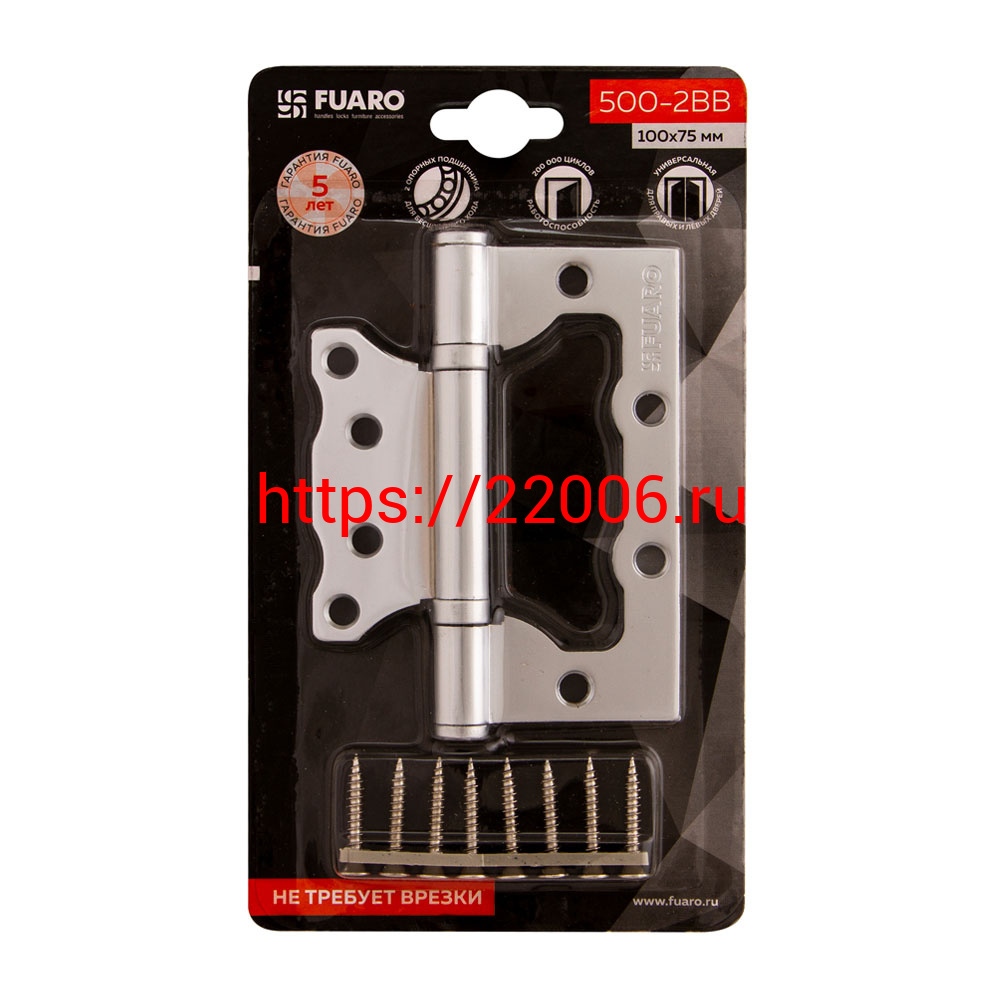 - Петля Fuaro (Фуаро) универсальная без врезки IN4500W-BL PC (500-2BB/BL 100x2,5) перламутровый хром БЛИСТЕР в Москве недорого
