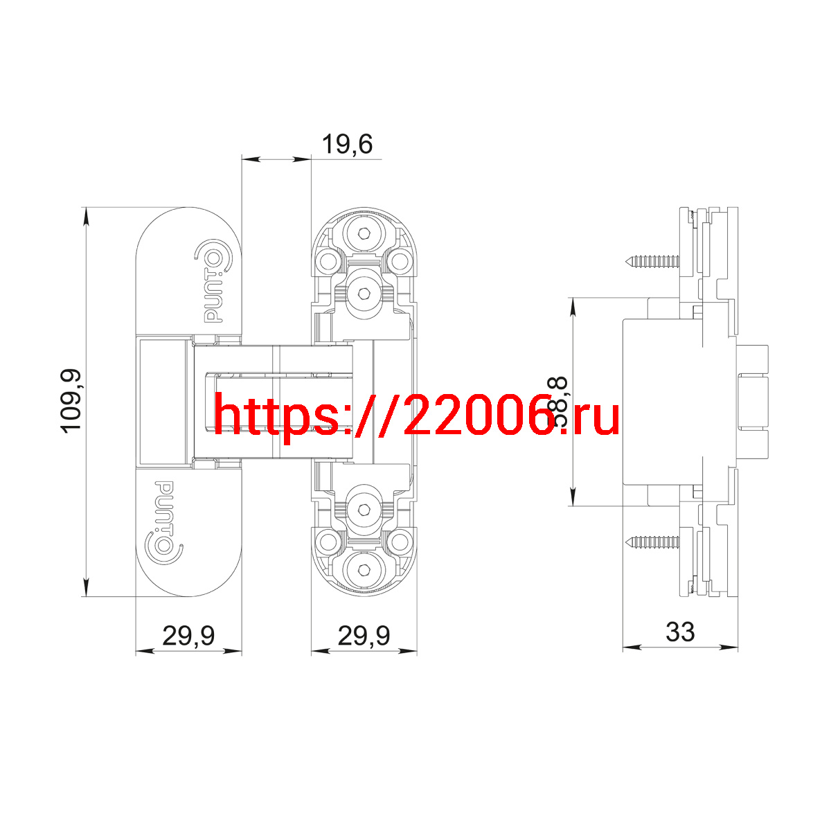 - Петля Punto (Пунто) скрытой установки UNION 2.2 ZN/IND SC мат. хром в Москве недорого