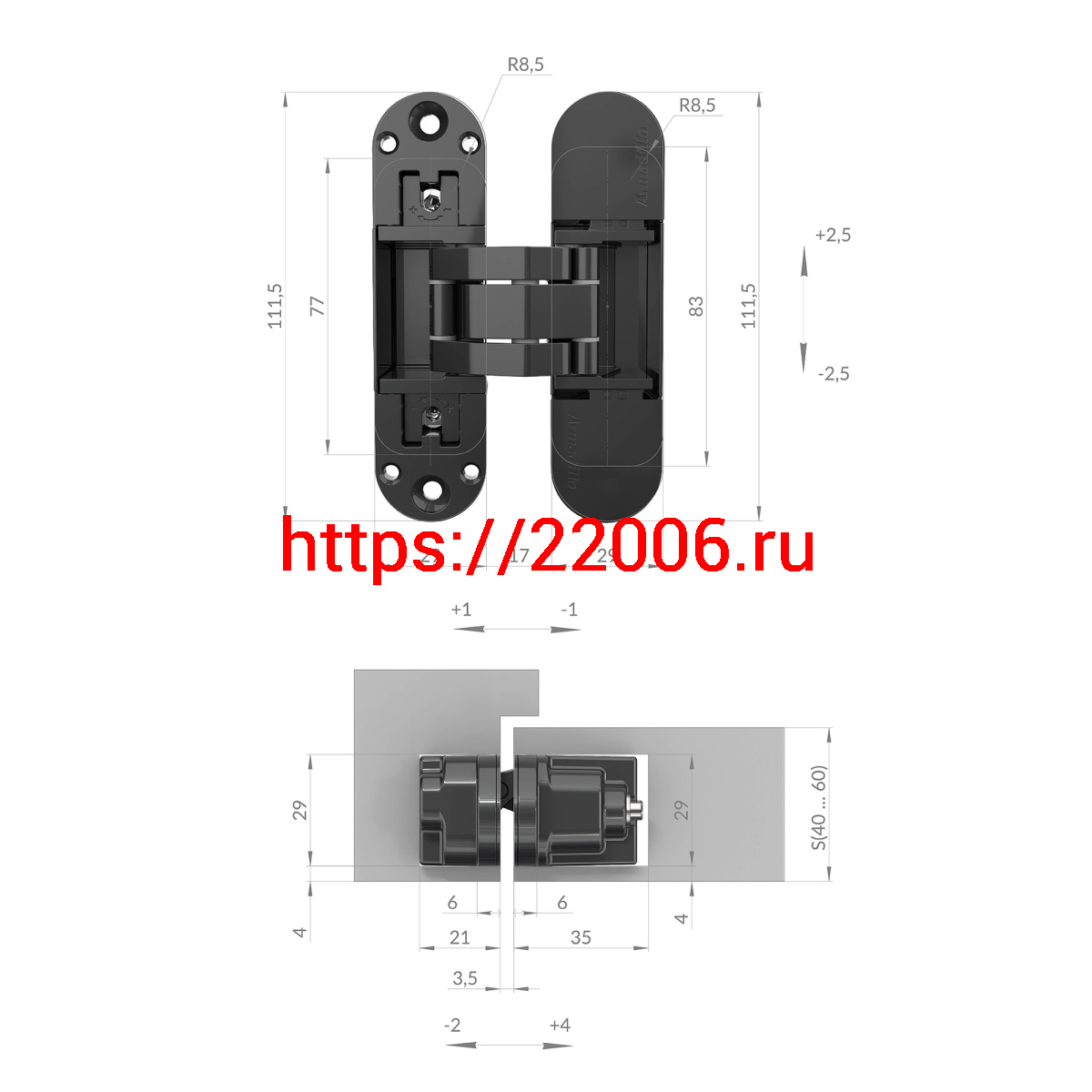 - Петля Armadillo (Армадилло) скрытой установки U3D6002.TG AC медь в Москве недорого