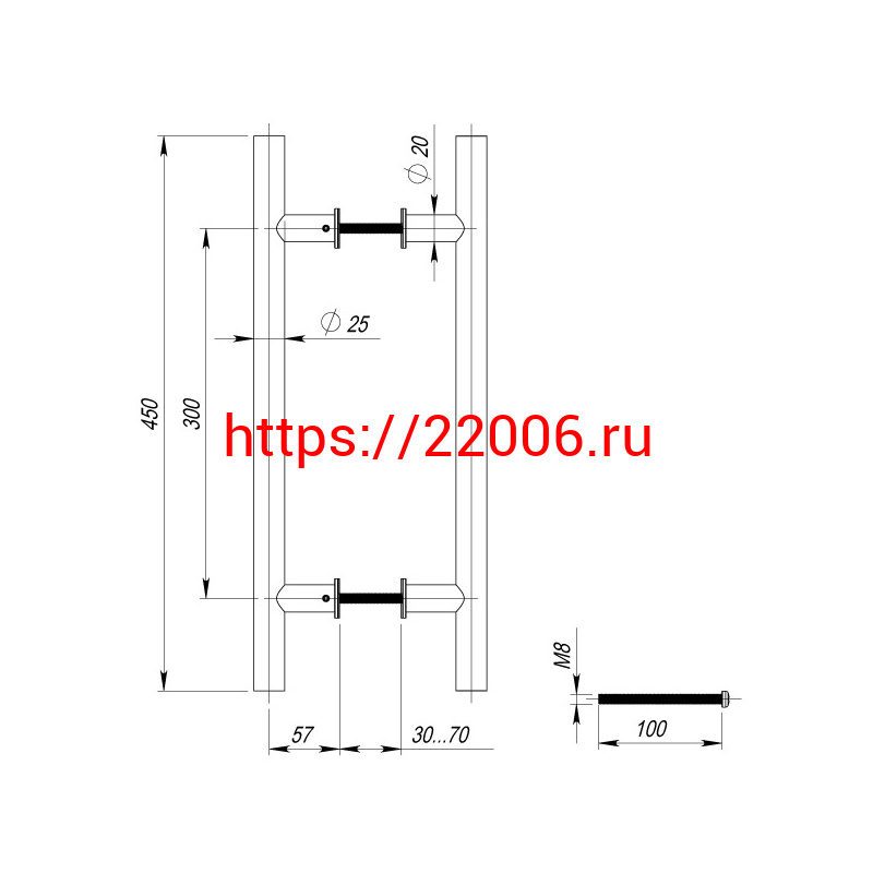 - Ручка-скоба Fuaro (Фуаро) PULL.PH25/300.22 INOX 304 (PH-22-25/300-INOX) в Москве недорого