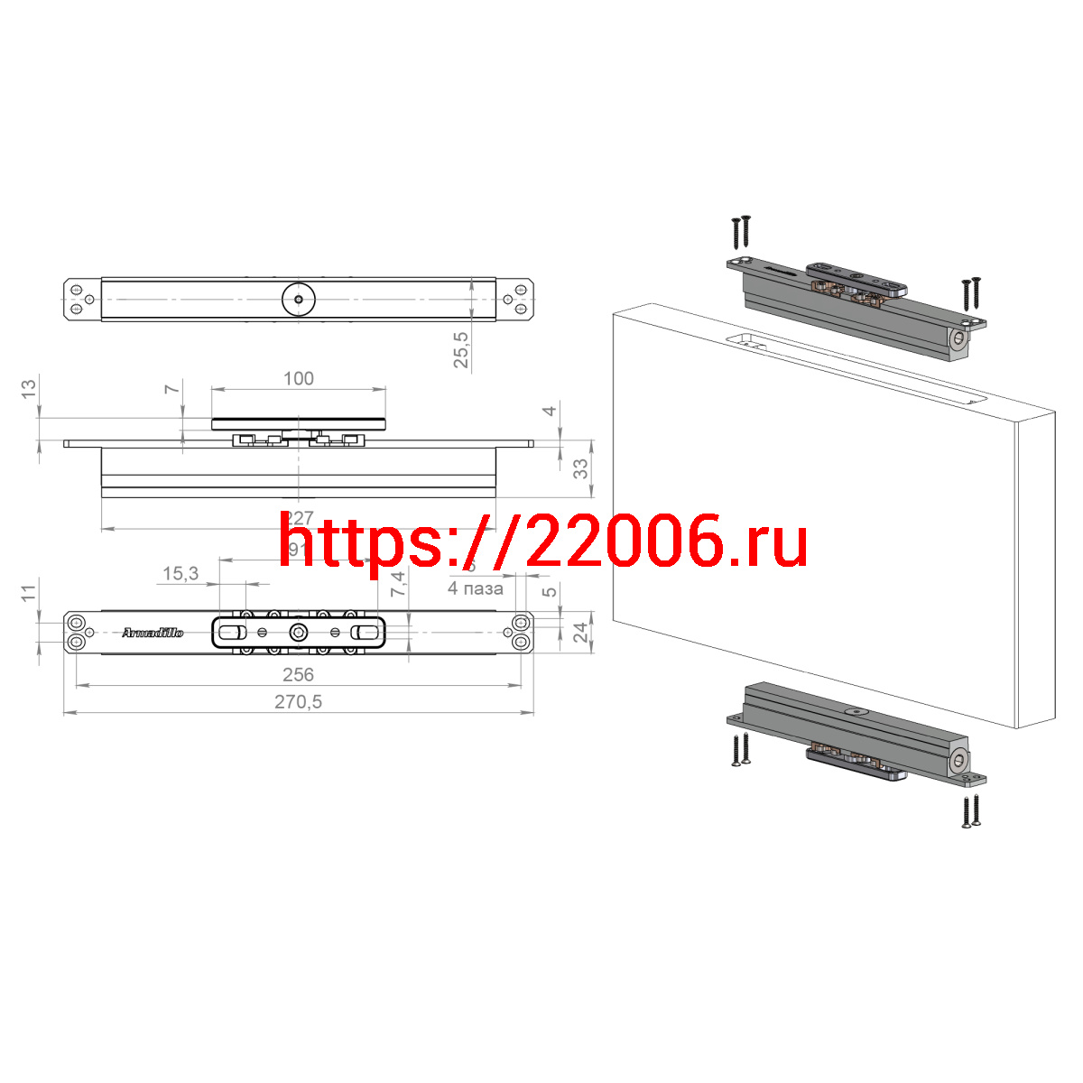 - Комплект Armadillo (Армадилло) для маятниковых дверей Pivot.150.FIX в Москве недорого