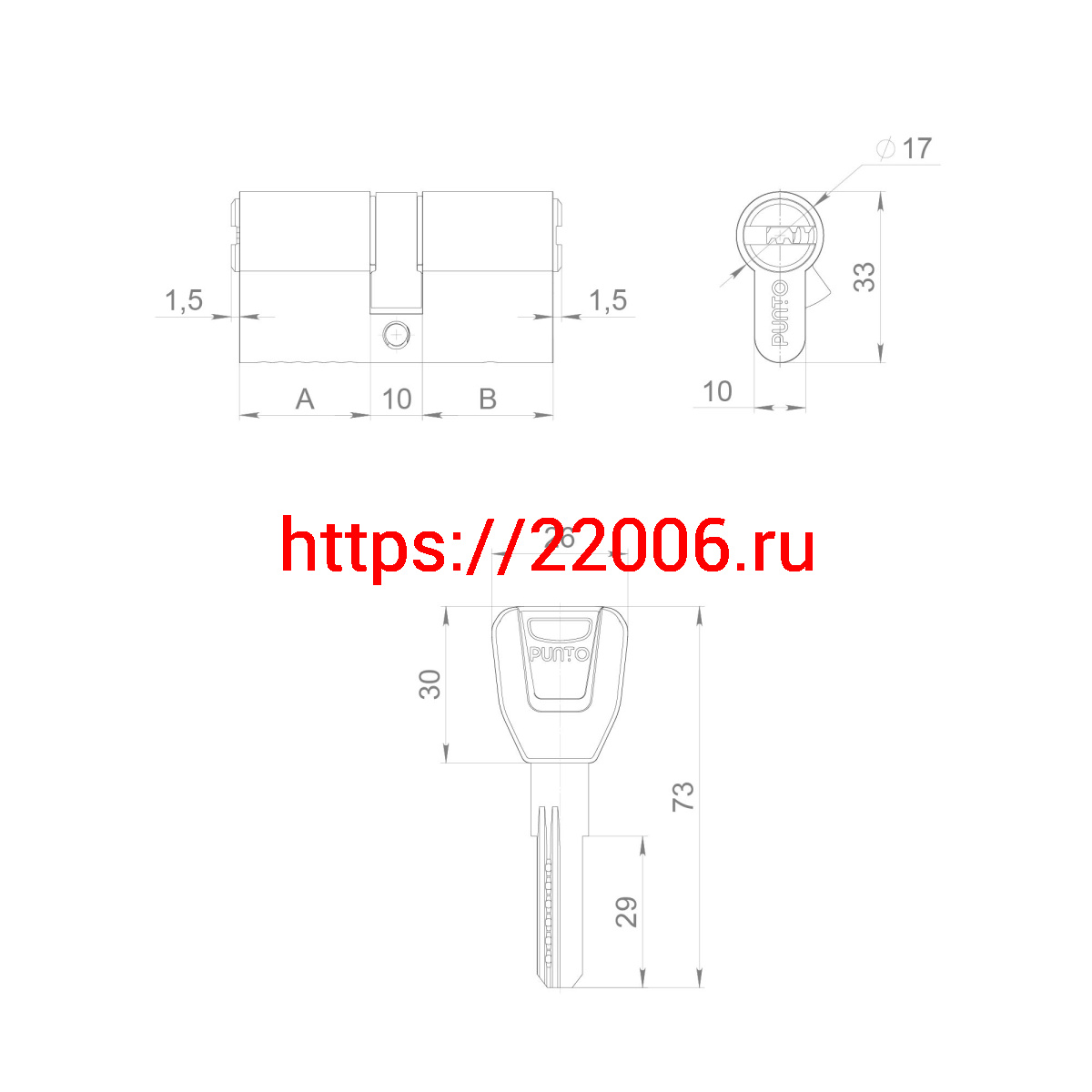 - Цилиндровый Punto (Пунто) механизм (A200/70) A2000Key70(30+10+30) PB латунь в Москве недорого
