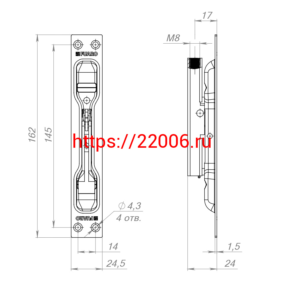 - Задвижка Fuaro (Фуаро) торцевая RIGEL-body/160 (TDB 160-24) без ригеля в комплекте в Москве недорого