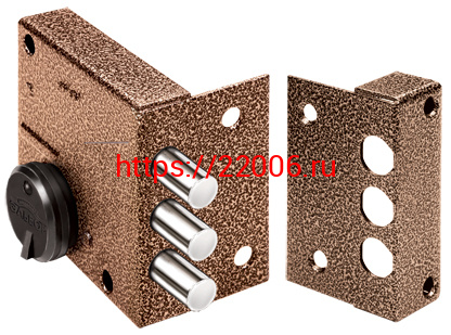 - Замок Elbor (Эльбор) накладной Кремень 1.04.51.КМА, никель, сув., 3 риг., зап. коробка, медный антик /32383/ в Москве недорого