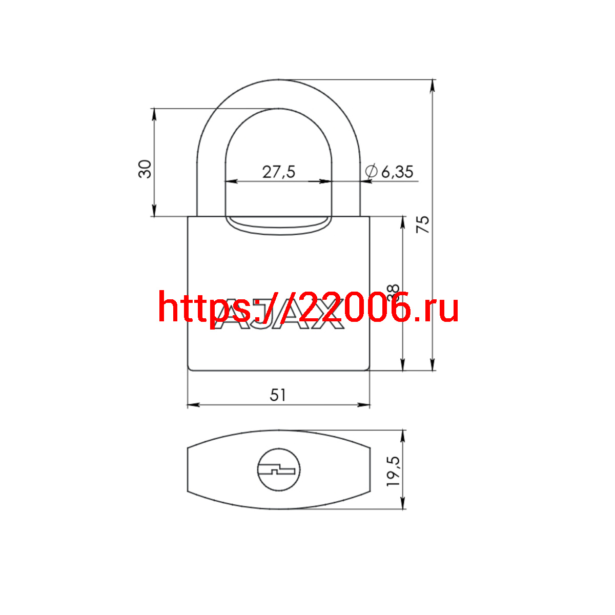 - Замок Ajax (Аякс) навесной PD-0550 3 key в Москве недорого