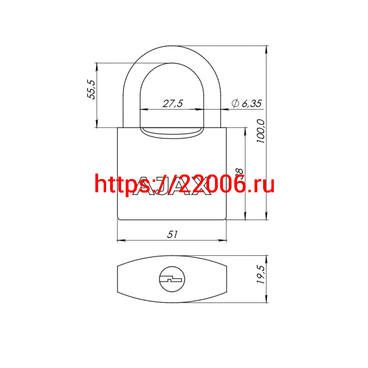- Замок Ajax (Аякс) навесной PD-0550L 3 key в Москве недорого