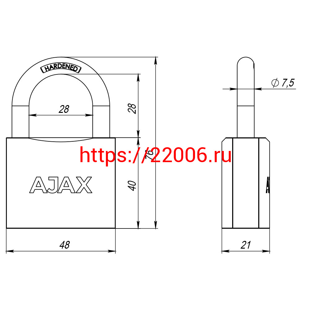 - Замок Ajax (Аякс) навесной PD-0150 (PD-01-50) 3 key англ. в Москве недорого