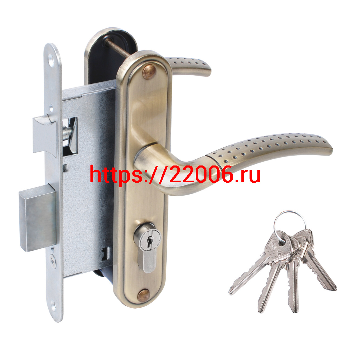 - Замок Omega (Омега) врезной цилиндровый с защёлкой в комплекте с ручкой ЗВ4-55.27 (ант.бронза), 4 кл. в Москве недорого