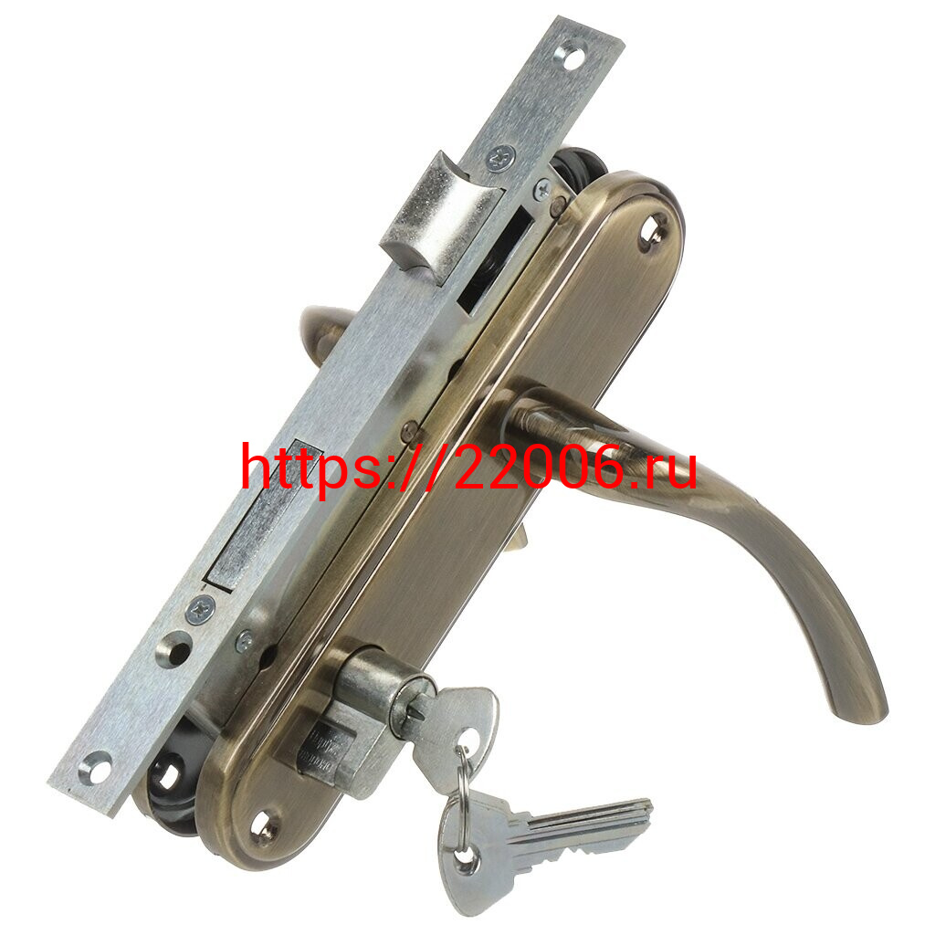 - Замок Omega (Омега) врезной цилиндровый с защёлкой в комплекте с ручкой ЗВ4-70.27 (ант.бронза), 4 кл. в Москве недорого