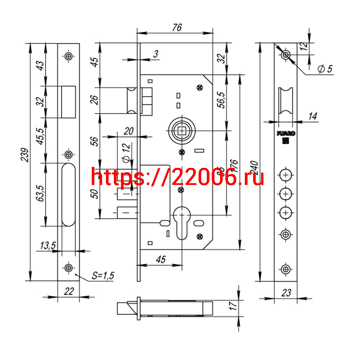 - Корпус Fuaro (Фуаро) врезного замка с защёлкой DD900/C-45.85.3MR (900 3MR W/B) PB латунь в Москве недорого
