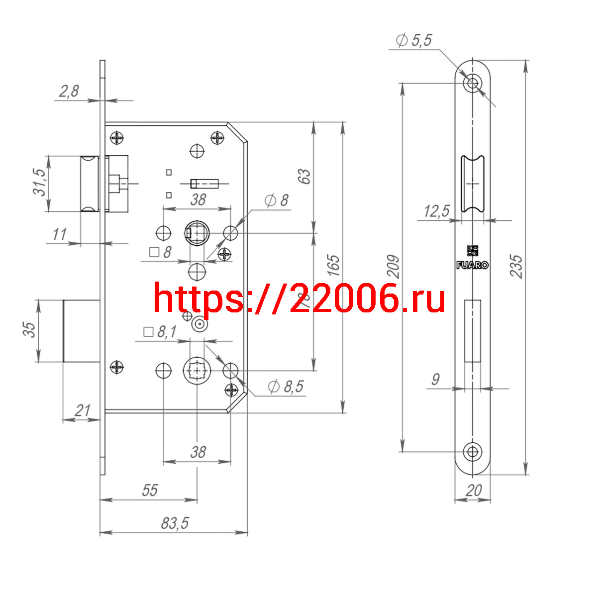 - Замок Fuaro (Фуаро) врезной DD.INOX/WC-55.78 в Москве недорого