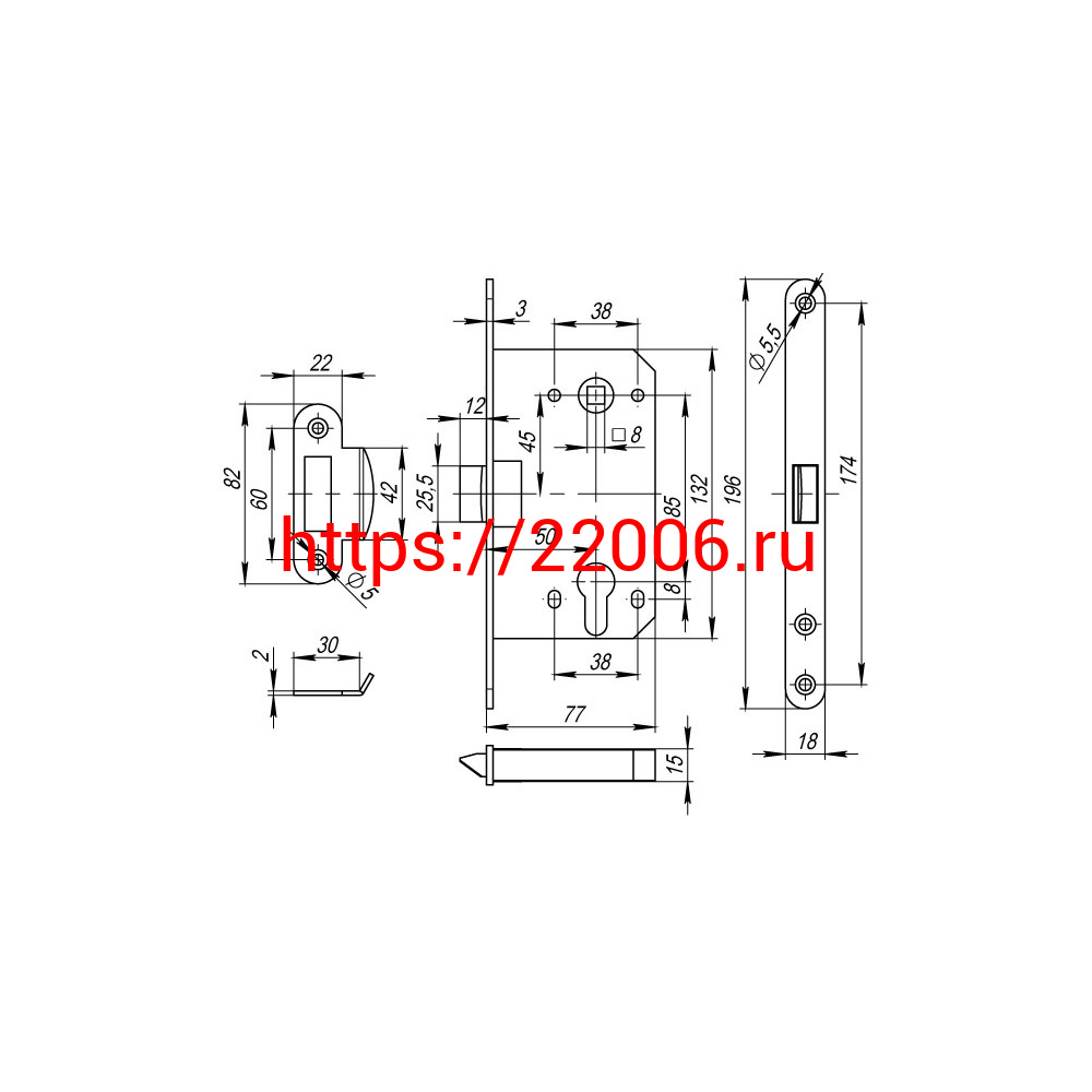 - Корпус Fuaro (Фуаро) врезного замка c защёлкой PLASTP85C-50 (P85C-50) SSC сатинированный хром в Москве недорого