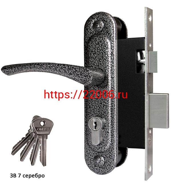 - Замок Omega (Омега) врезной цилиндровый с защёлкой в комплекте с ручкой ЗВ7 (серебро), 4 кл. в Москве недорого