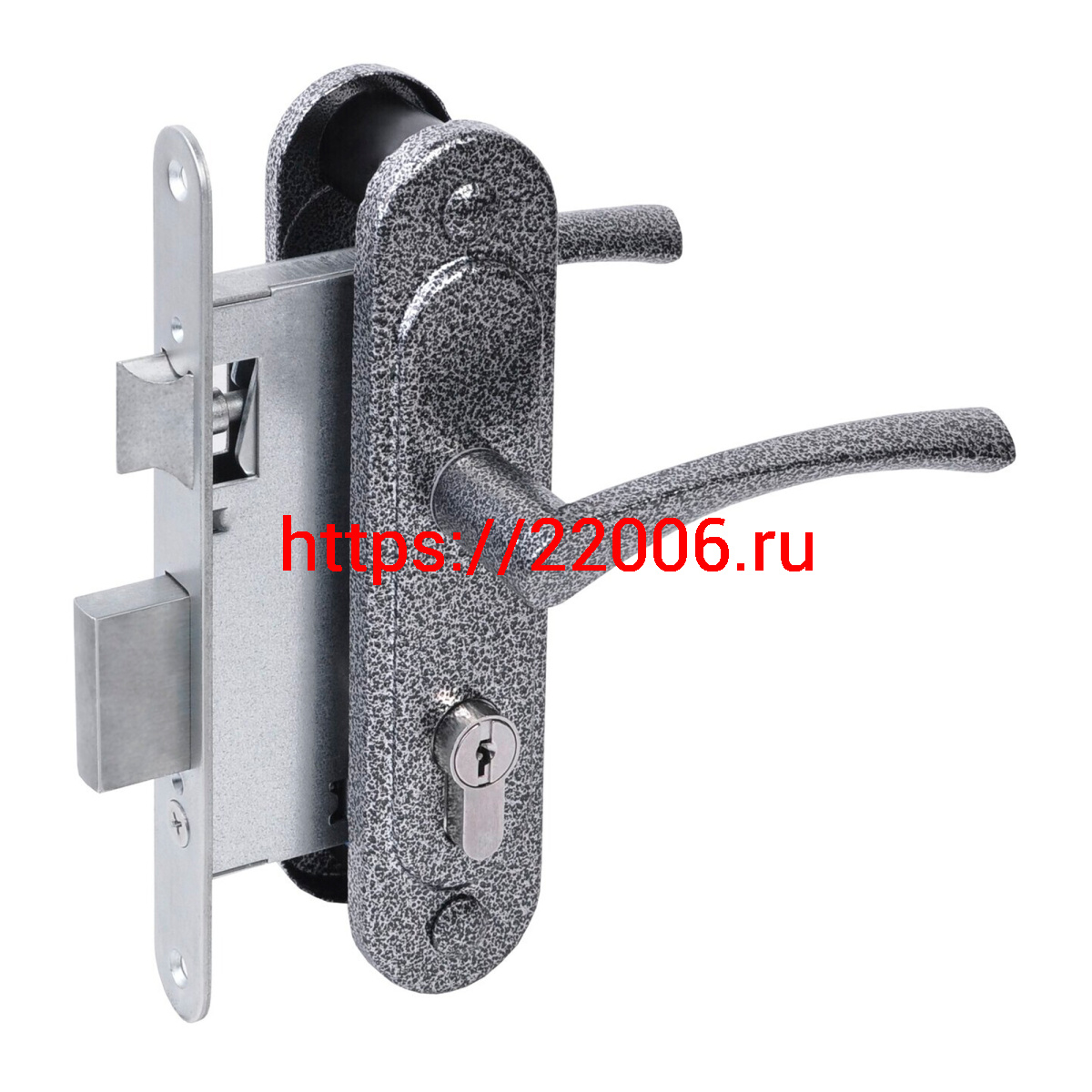 - Замок Absolyute (Абсолют) врезной цилиндровый с защёлкой в комплекте с ручкой ЗВ4-3/07 (серебро антик), 4 кл. в Москве недорого