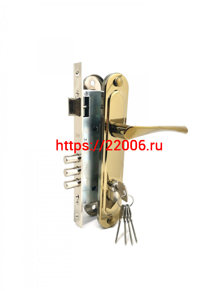 - Замок Zenit (Зенит) врезной цилиндровый с защёлкой в комплекте с ручкой ЗВ4-85.3 (золото лак), 5 кл. в Москве недорого