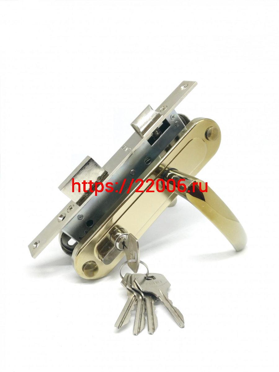 - Замок Zenit (Зенит) врезной цилиндровый с защёлкой в комплекте с ручкой ЗВ7-70.4-02 (золото лак), 5 кл. в Москве недорого