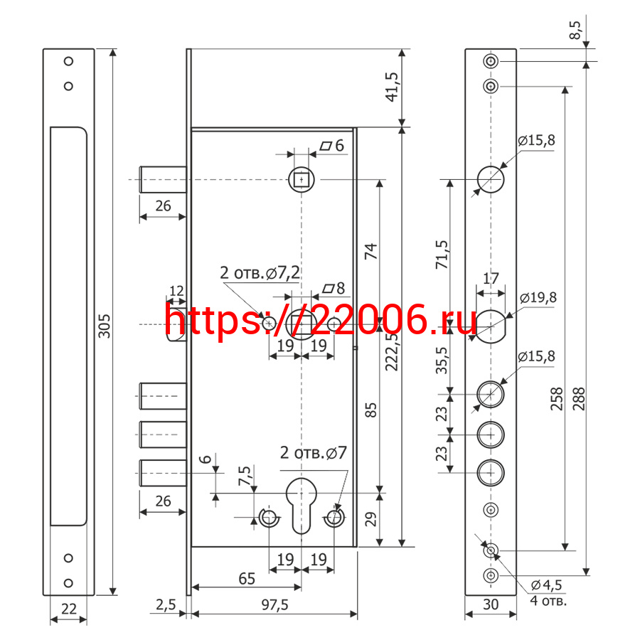 - Корпус Guardian (Гардиан) врезного замка с задвижкой и защёлкой ЗВ 32.15 /123:110:1/ в Москве недорого