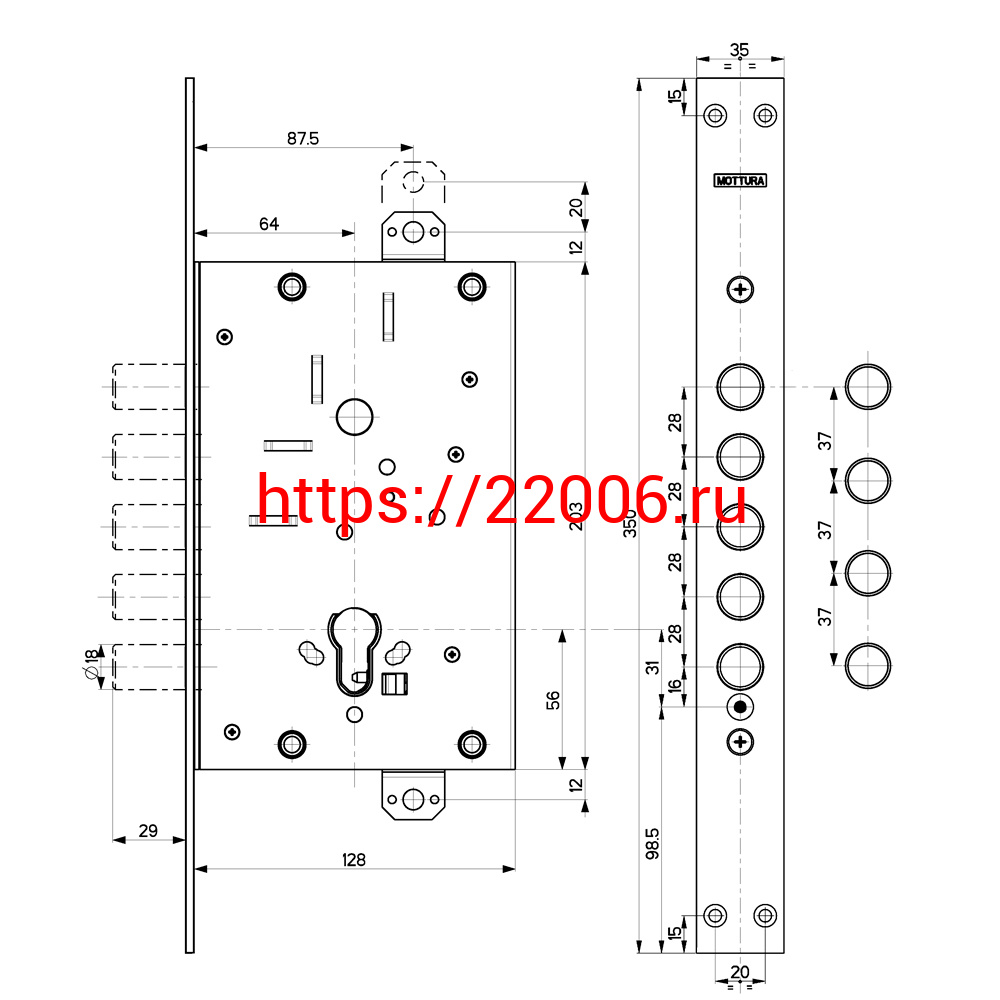 - Корпус Mottura (Моттура) врезного замка 82.525W800B в Москве недорого