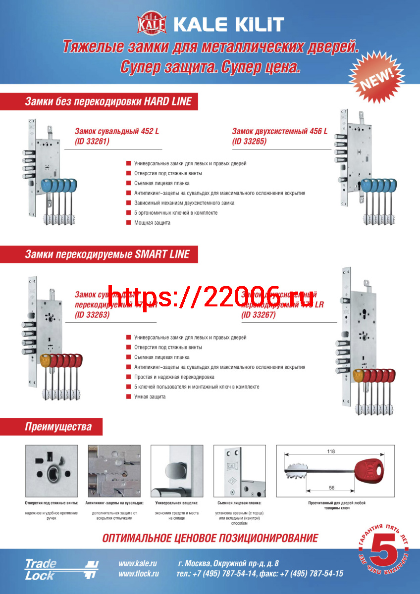 - Замок Kale kilit (Кале килит) врезной двухсистемный 476 LR перекодируемый SMART LINE АКЦИЯ в Москве недорого