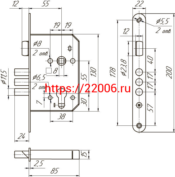 - Корпус Mettem (Меттэм) врезного замка с защёлкой ЗВ4 402.0.0 в Москве недорого