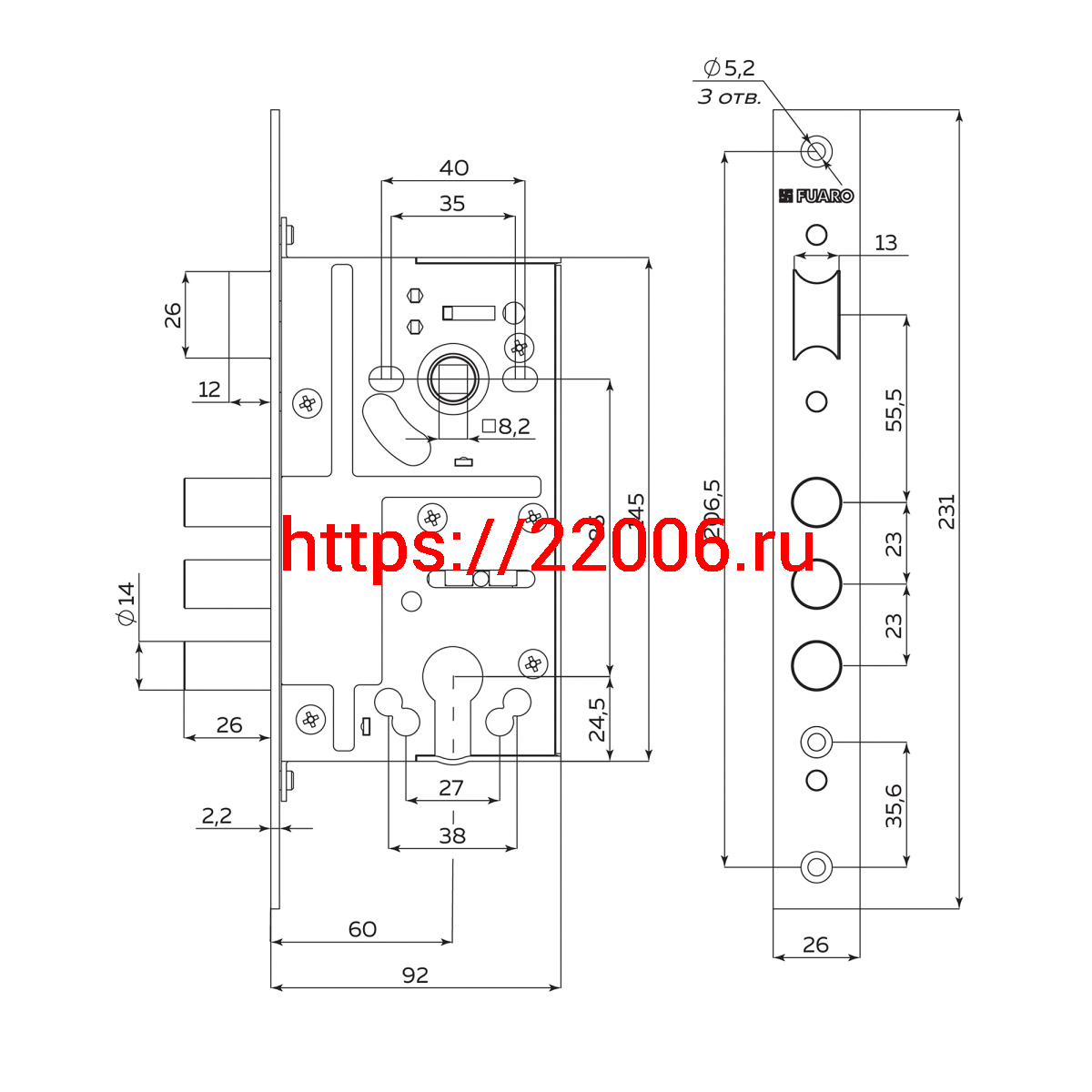 - Корпус Fuaro (Фуаро) врезного замка c защёлкой MDV811/C-60.85.3R14 в Москве недорого