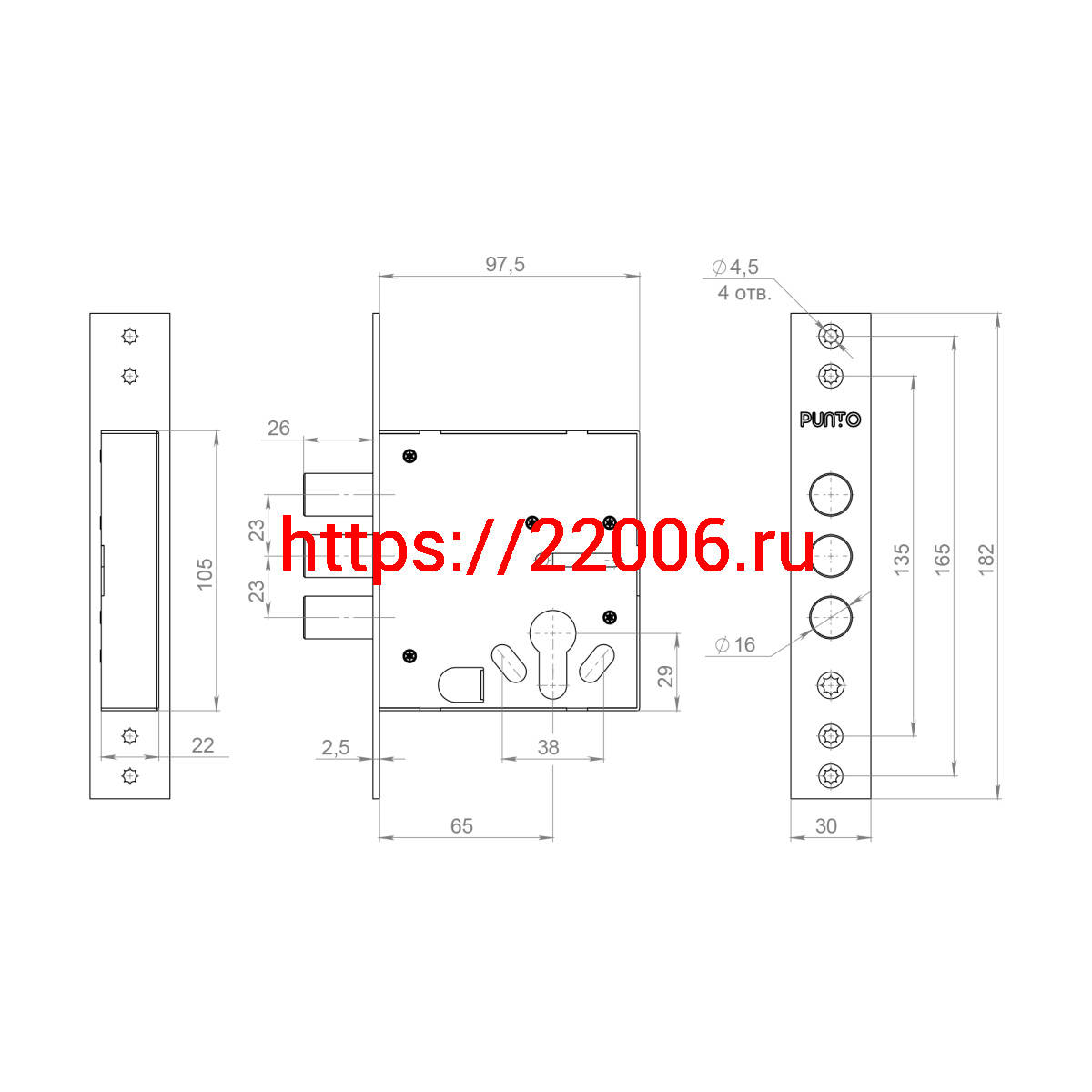 - Корпус Punto (Пунто) врезного замка цилиндровый MDV30/C-65.00 CP хром тех.уп. в Москве недорого