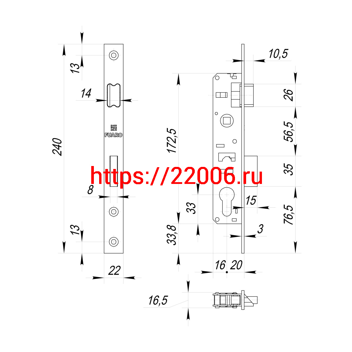- Корпус Fuaro (Фуаро) узкопрофильного замка с защелкой PROF153-20/85 (153-20/85) CP хром в Москве недорого