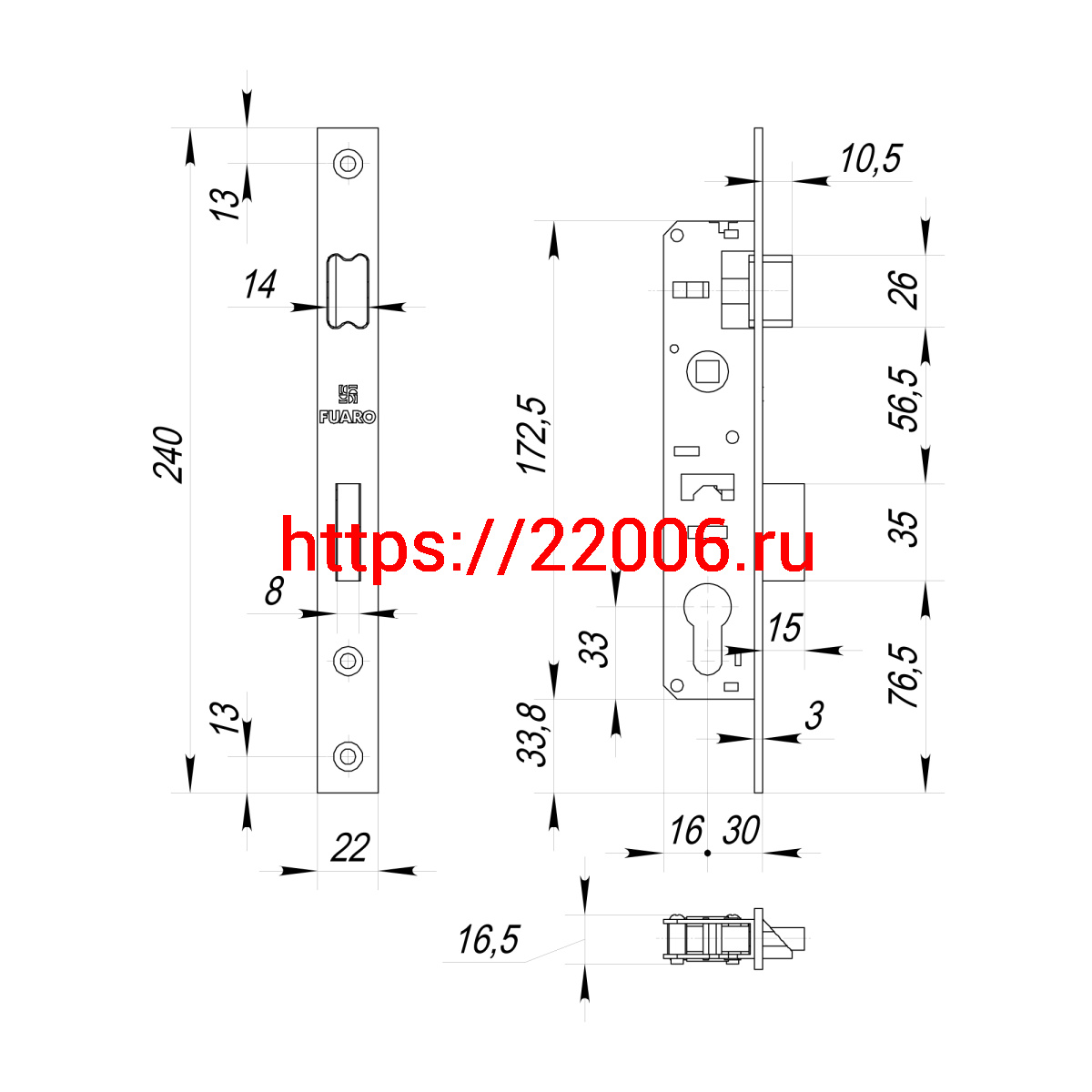 - Корпус Fuaro (Фуаро) узкопрофильного замка с защелкой PROF153-30/85 (153-30/85) CP хром в Москве недорого