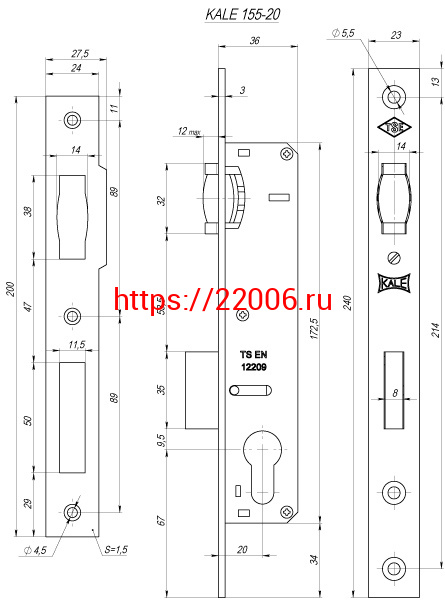 - Замок Kale kilit (Кале килит) врезной цилиндровый узкопроф.155 (20 mm) (никель) 3 кл. в Москве недорого
