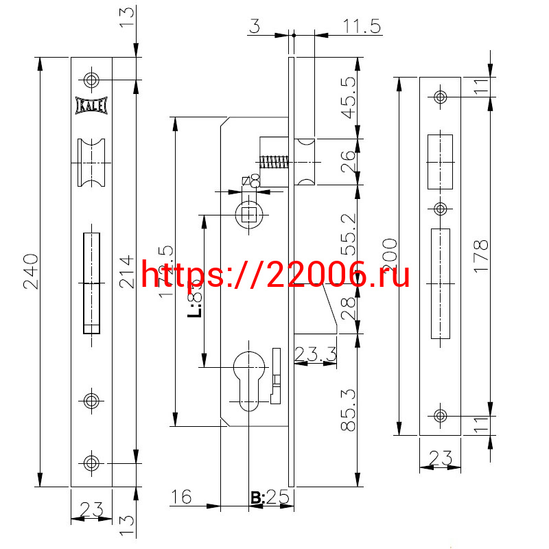 - Корпус Kale kilit (Кале килит) узкопрофильного замка с защёлкой 253 (25 mm) w/b (никель) в Москве недорого