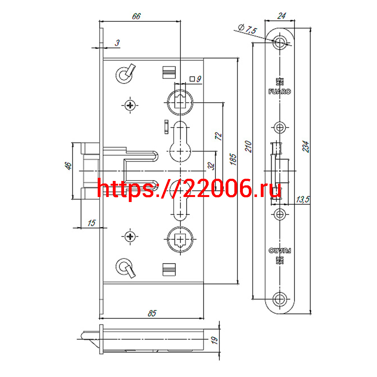 - Корпус Fuaro (Фуаро) врезного замка c защёлкой FP.C-65.72-0432 (FL-0432) в Москве недорого