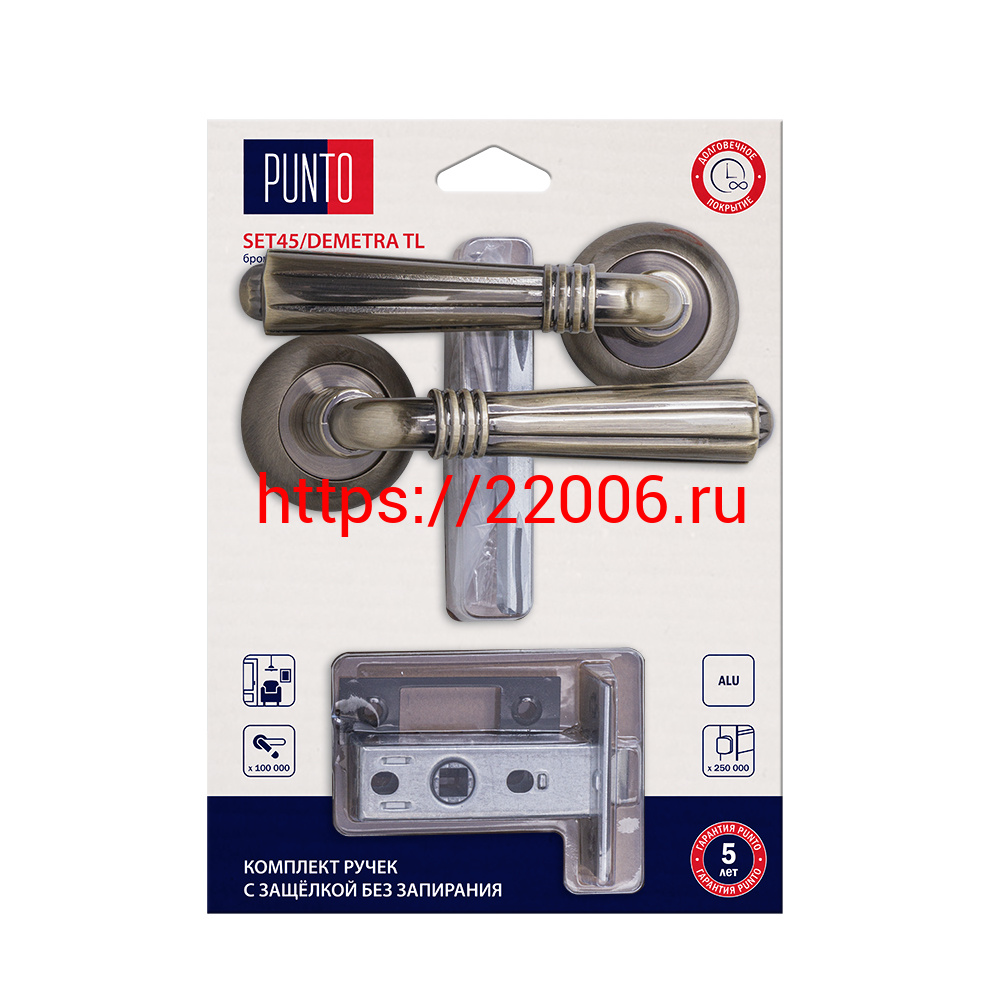 - Комплект ручек Punto (Пунто) с защелкой без запирания LM/A SET45R.TL54.DEMETRA/HD ABG-6 бронза в Москве недорого