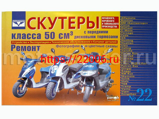 - Книга № 22 Скутеры китайского производства (двигатель 50 см3, дисковый) Устройство, Ремонт, Каталог в Москве недорого