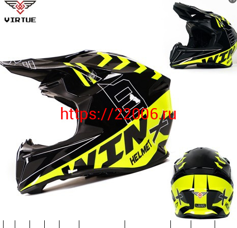 - Мотошлем VIRTUE MD-902 Кросс черно-желтый с надписью (S) в Москве недорого