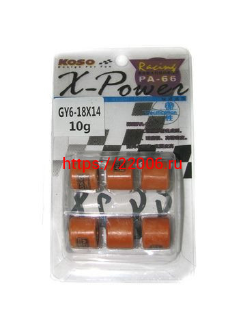 - Ролики вариатора (комплект 6 штук) 18*14 10 грамм 152QMI, 157QMJ KOSO в Москве недорого
