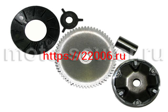 - Вариатор 139QMB 50сс в сборе (ролики, наружный шкив, крыльчатка, палец, храповик) в Москве недорого