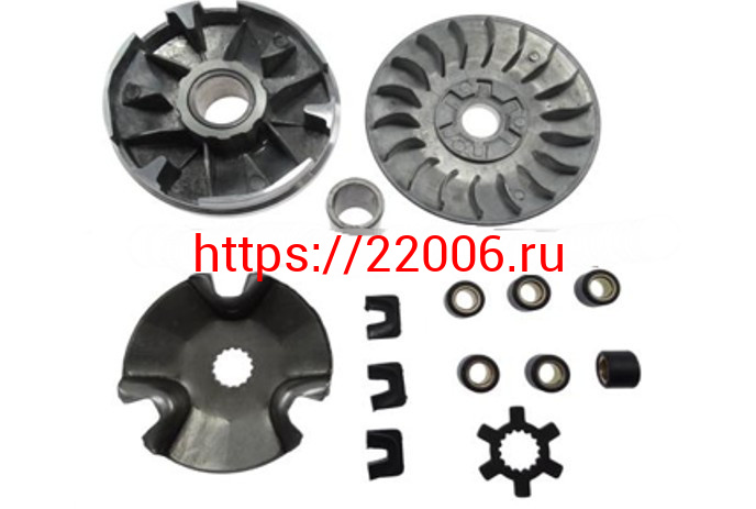 - Вариатор Yamaha JOG-90 в сборе (ролики, наружный шкив, палец, шайба наружного шкива) в Москве недорого