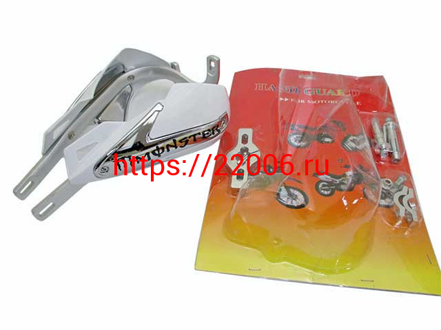 - Защита рук алюминиевая универсальная с креплением на 22 руль белая Monster в Москве недорого