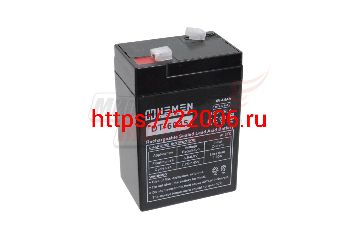 - Аккумулятор герметичный 6В 4,5Aч HEMEN ENERGY DT6045(OT4.5-6/A)(70x48x100mm)(электромашинки) в Москве недорого