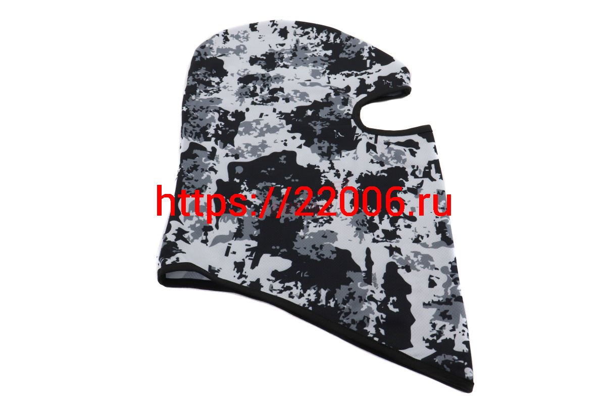 - Подшлемник (балаклава) серо-бело-чёрный камуфляж MC-1002 (1 широкий вырез для глаз) в Москве недорого