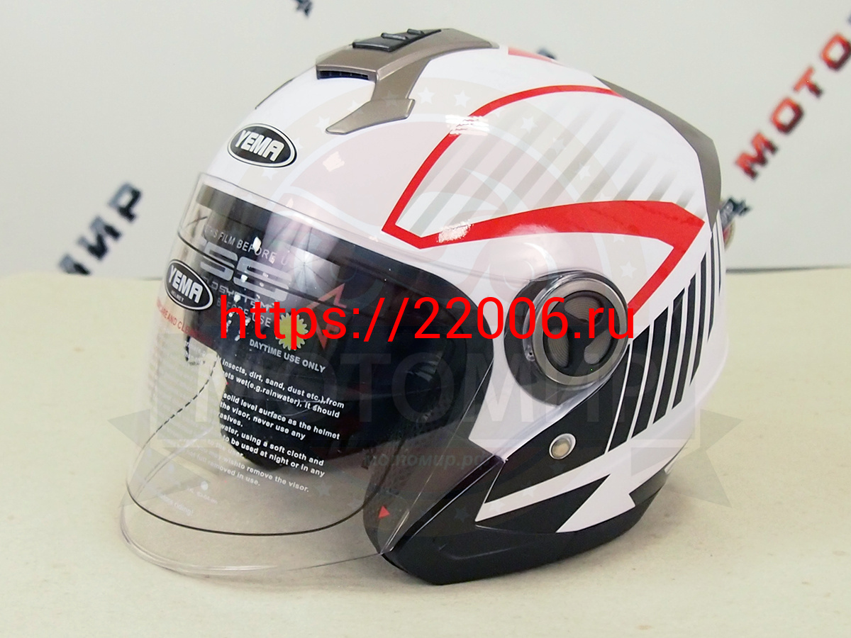 - Шлем открытый YM-623 "YAMAPA", бело-красный, р-р S (с АНТИкр, нутр солнцезащитн очки, прозр. визор,) в Москве недорого