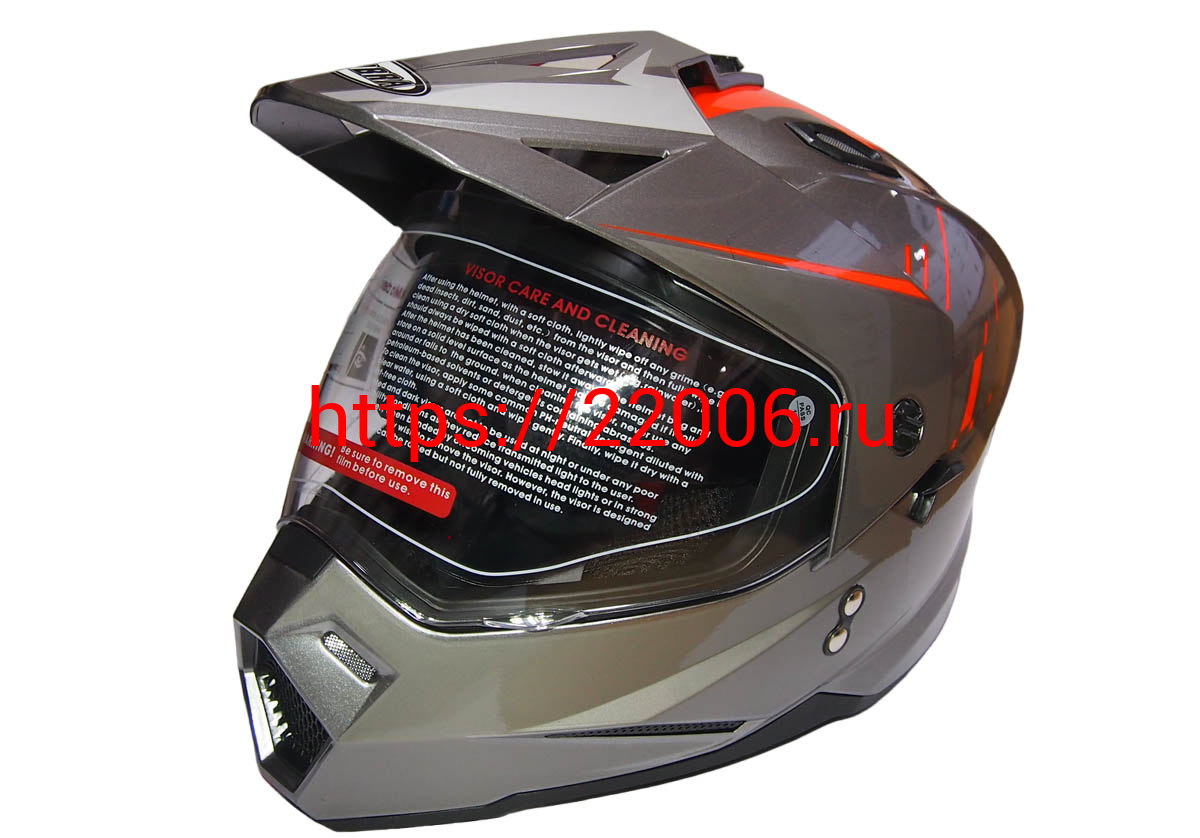 - Шлем туринг (кросс со стеклом и очками) COBRA JK802, серо-оранжевый, размеры M в Москве недорого